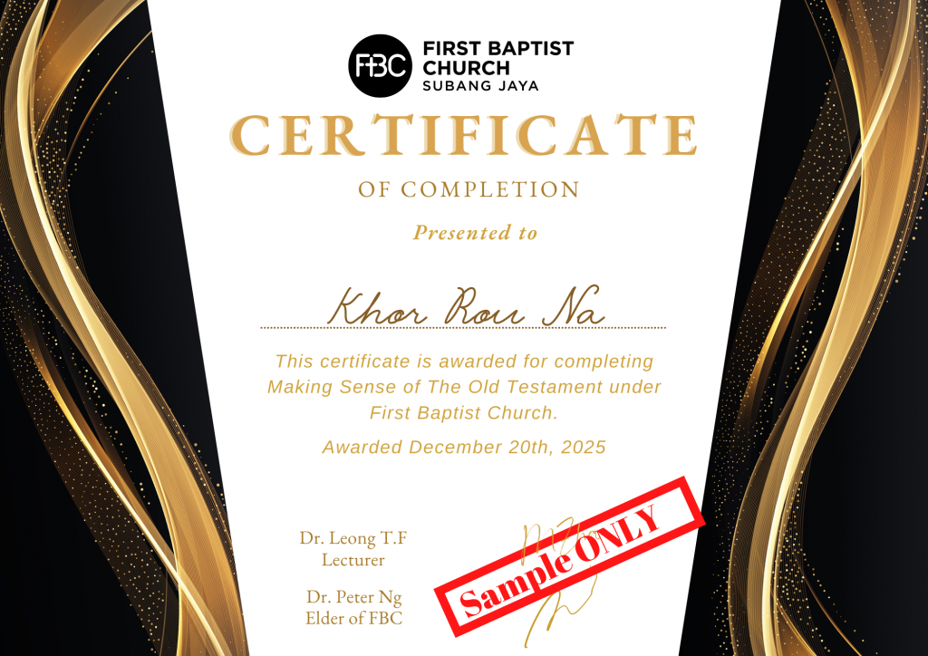 - Printing fee: RM 50 (Goes to support FBC’s Theological Education Ministry).